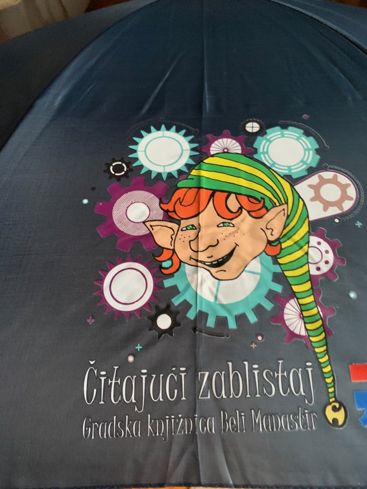 Ne treba mi veća pohvala. Nitko ne vidi, ali na putu do Zagreba iz kojeg smo za Baranju krenuli to jutro blistam zadovoljna kao vragolan s porukom „Čitajući zablistaj“ na darovanom kišobranu GK Beli Manastir.