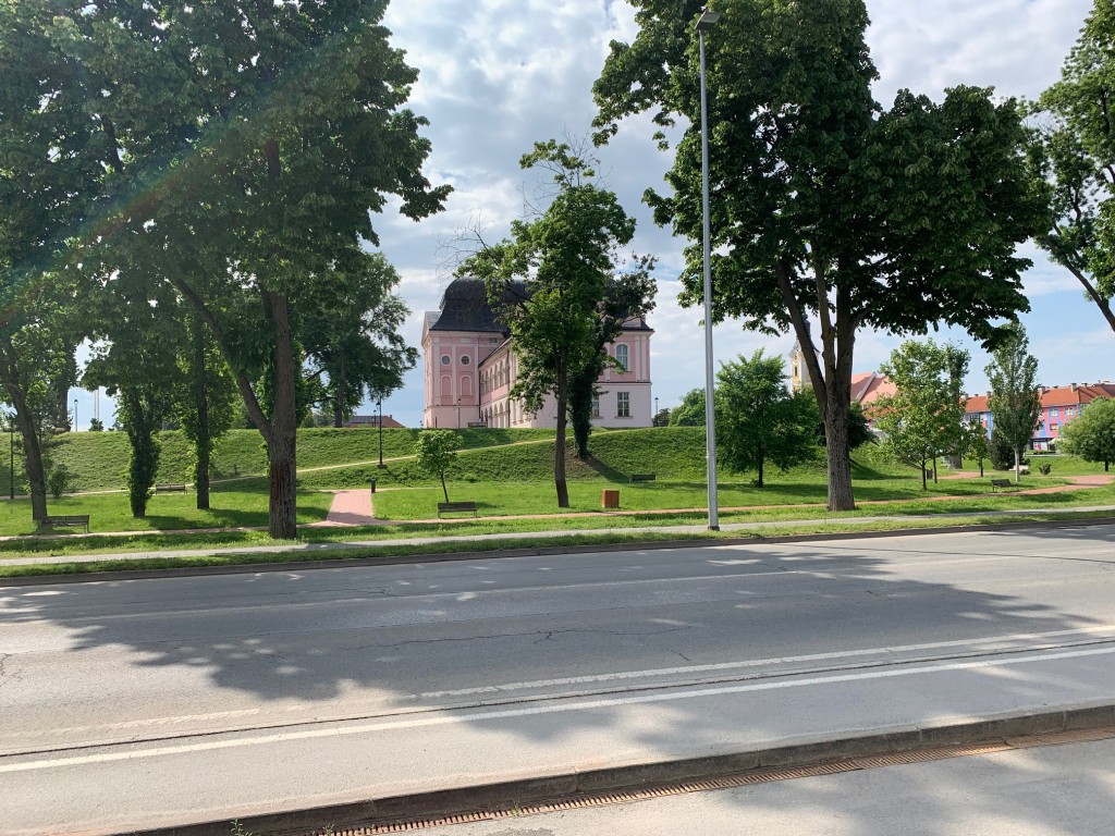 - Dvorac Dore Pejačević blista ispred knjižnice, a na nagovor promotorice Diane G. Kovač i ja se trpam uz najpoznatiju vedutu Virovitice