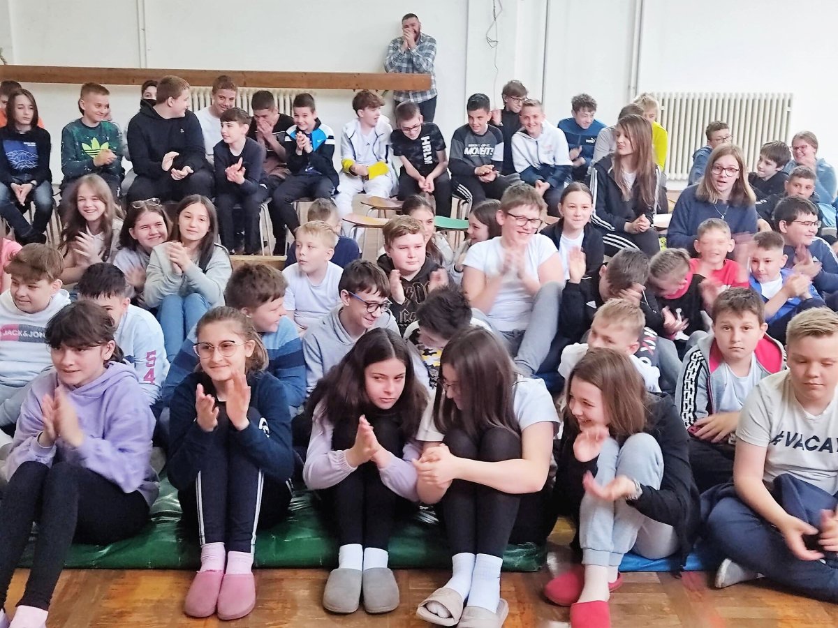 Poslije upoznavanja s ravnateljicom Vlatkom Družinec, pedagogom Markom Koprivnjakom, profesoricama hrvatskog jezika mogli smo k učenicima. Strah od velike nefunkcionalne dvorane razbijen je odmah prilikom ulaska. Vatreni doček, pljesak više od sto i pedeset učenika. Odmah smo kliknuli. Bilo je jasno da su se dobro pripremili. Uvodno se svima obratila knjižničarka Suzana Pracaić, koja je spomenula da sam u „Gaju“ bila već 2004. Napomenula je da je susret posvećen Noći knjige kojoj je tema bila umjetna inteligencija, pa će razgovor najvećim dijelom biti fokusiran na knjigu „Moj brat živi u kompjutoru“, dakle na budućnost.