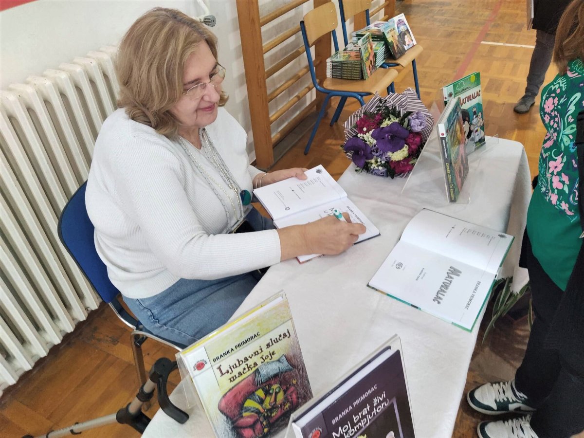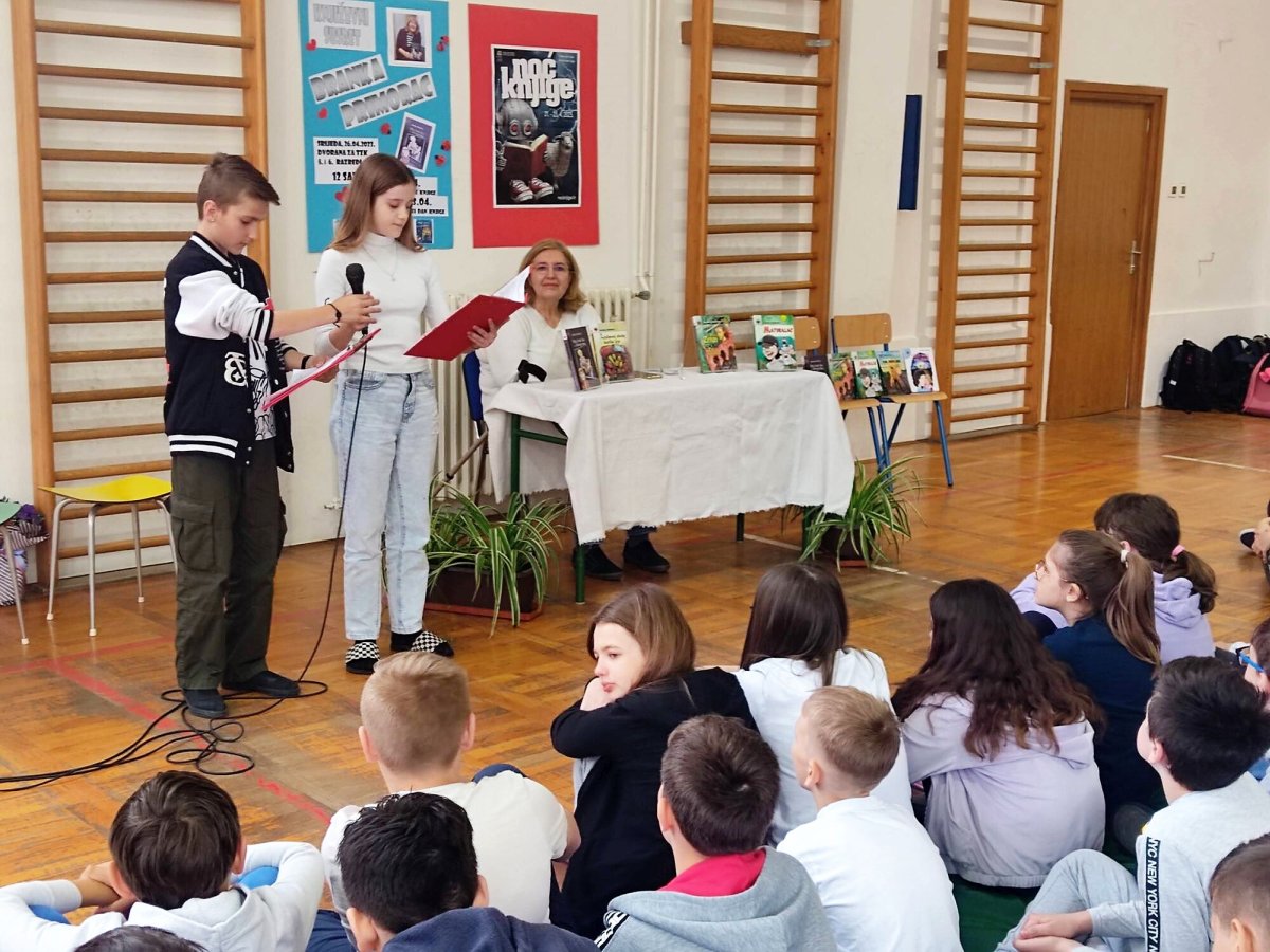 Na početku su dvoje učenika Ela Jurinjak i Patrik Halužan upoznali prisutne s mojom biografijom i djelima koje sam napisala, s nagradama koje sam dobila. Preostalo vrijeme bilo nam je prekratko za sve što smo jedni drugima htjeli reći. Ono što je bilo očigledno jest sljedeće. Knjiga „Moj brat živi u kompjutoru“, koja se bavi životom na Zemlji za pedeset godina, točnije 2071., a koja je pisana prije vremena korone, predviđa mnogo štošta novoga ljudskom rodu. Sad je zabavno slušati i čitati o robotima, kompjutorskim programima, napretku medicine, prometa…, ali što će se dogoditi ljudima? Hoće li se udaljiti jedni od drugih više nego što su to danas? Hoće li bake i djedovi moći zagrliti unuke, pokazati emocije ili ćemo biti hladni kao roboti koji će raditi umjesto nas i za nas? Hoće li oni biti roblje kao ljudi u srednjem vijeku i koliko dugo će to htjeti biti? Štošta je pod znakom pitanja! Umjetna inteligencija nije igračka kojoj će biti lako zavrnuti šiju i stvar vratiti na početak. Već sada nas kontrolira više nego smo mi toga svjesni, a kada otkrijemo da sve zna o nama ostanemo zapanjeni. A tek je 2023. Neće se ona lako odreći privilegije da sve zna o svakome.