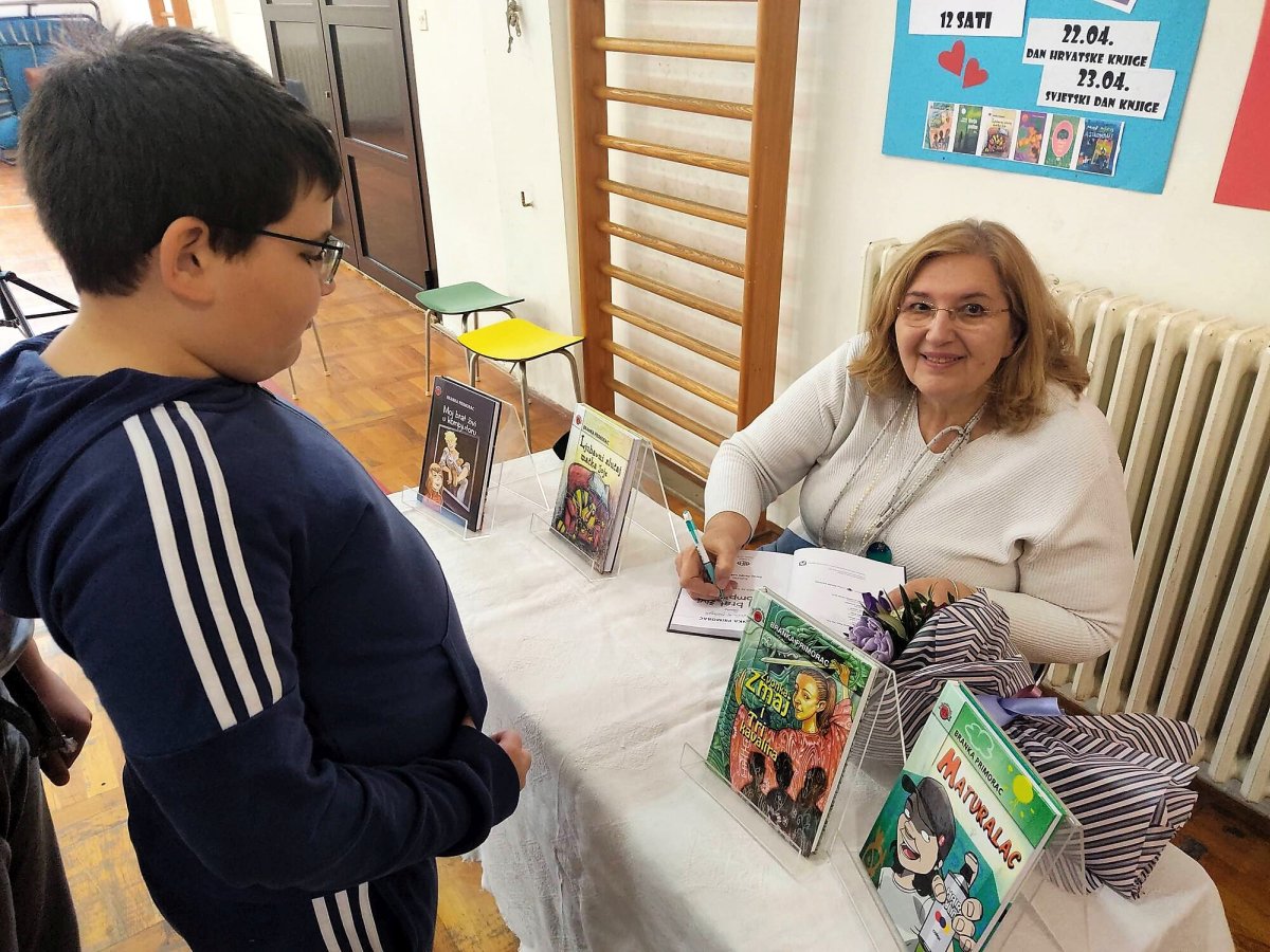 Sedam dana poslije kviza na temu knjige „Moj brat živi u kompjutoru“ u Kulturnom centru Predavac kraj Bjelovara dobila sam poziv za književni susret s učenicima petih i šestih razreda OŠ Ljudevita Gaja u Krapini.